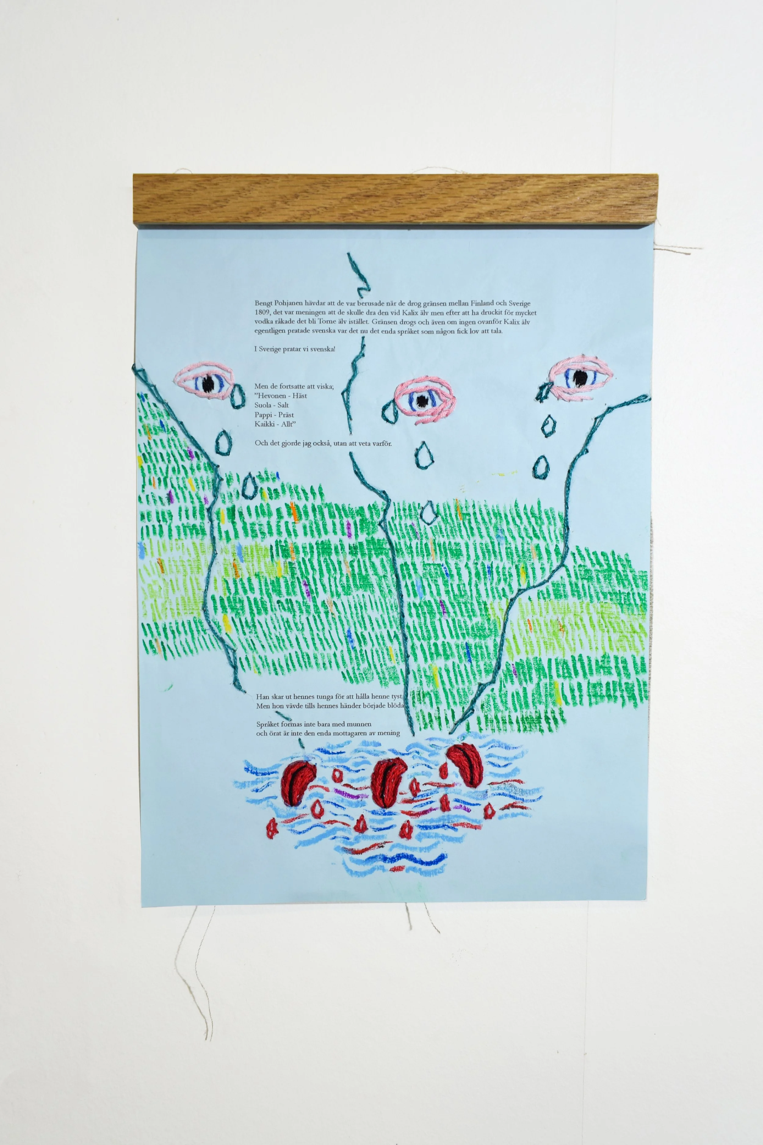 Text - Papper, Lintyg, Tråd, Oljekrita