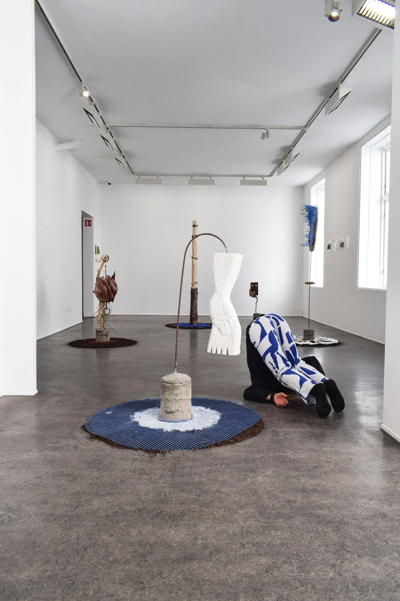 Together with the choreographer Karianne Karlsrud, a choreography was developed. The choreography is an extension of the movement and performativity of the process and material. Choreography is the relationship between time, body and space. My material lists and texts have a lot in common with what in the world of choreography is called scores; instructions for movement. Through the work with the choreography, I want to connect to the process of the sculptures, the collection of materials, the production of form, and the potential for the sculptures to live on as bodies that make new associations. The choreography makes visible the movement in the gallery space.