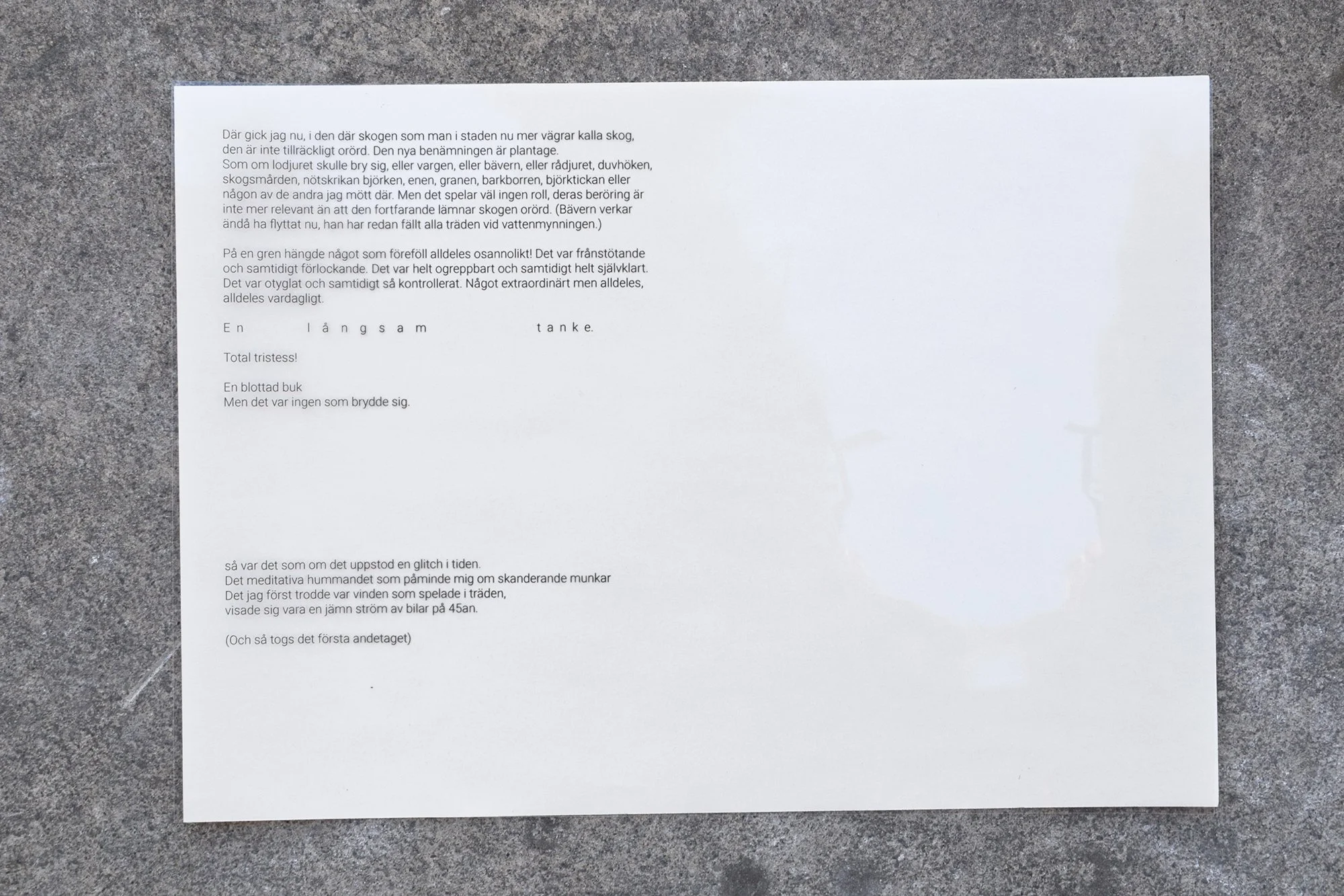 Frans G. Bengtson wrote the short story The Winter Man about the contrast between the mentality of the stoic old farmer's direct struggle with nature in relation to city dwellers who can keep nature and the cold winter at a safe distance with their heating pipes. The exhibition is a story about the relationship between city and countryside, culture - nature, fast thoughts - slow thoughts, reason and feeling as well as our preconceived notions about contradictions.